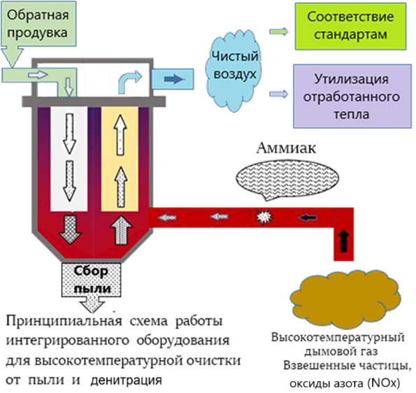 1. Комплексная очистка от высокотемпературных дымовых газов, пыли и оксидов азота (NOx)