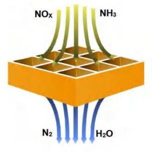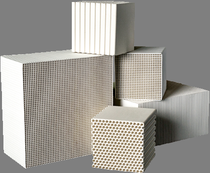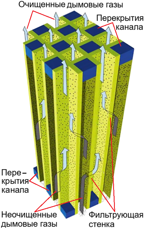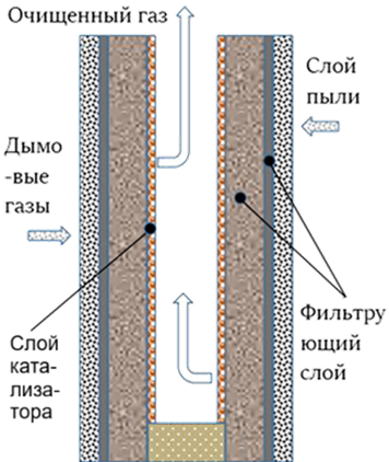 Дымовые газы, образующиеся при сжигании отходов, препятствуют образованию и очистке диоксинов Существуют, в основном следующие способы получения диоксина из дымовых газов при сжигании отходов: Повторный синтез отходов: Предшественник диоксина, образующийся в результате реакции неполного сгорания, и несгоревшие циклические углеводородные вещества, содержащиеся в мусоре, под каталитическим действием частиц Cu, Ni, Fe и других металлов, содержащихся в саже, вступают в реакцию с хлоридами, содержащимися в дымовых газах, с образованием диоксиноподобных веществ. Температура каталитической реакции составляет около 300ºС, при этом легко образуются диоксиноподобные вещества. Технология высокотемпературного удаления взвешенных веществ с керамической сотовой объемной каталитической мембраной при использовании в процессе сжигания отходов для фильтрации и удаления летучей золы, содержащей Cu, Ni, Fe и другие металлы, обладающие каталитической активностью при высокой температуре, превышающей 520ºС, тем самым препятствует образованию диоксинов.