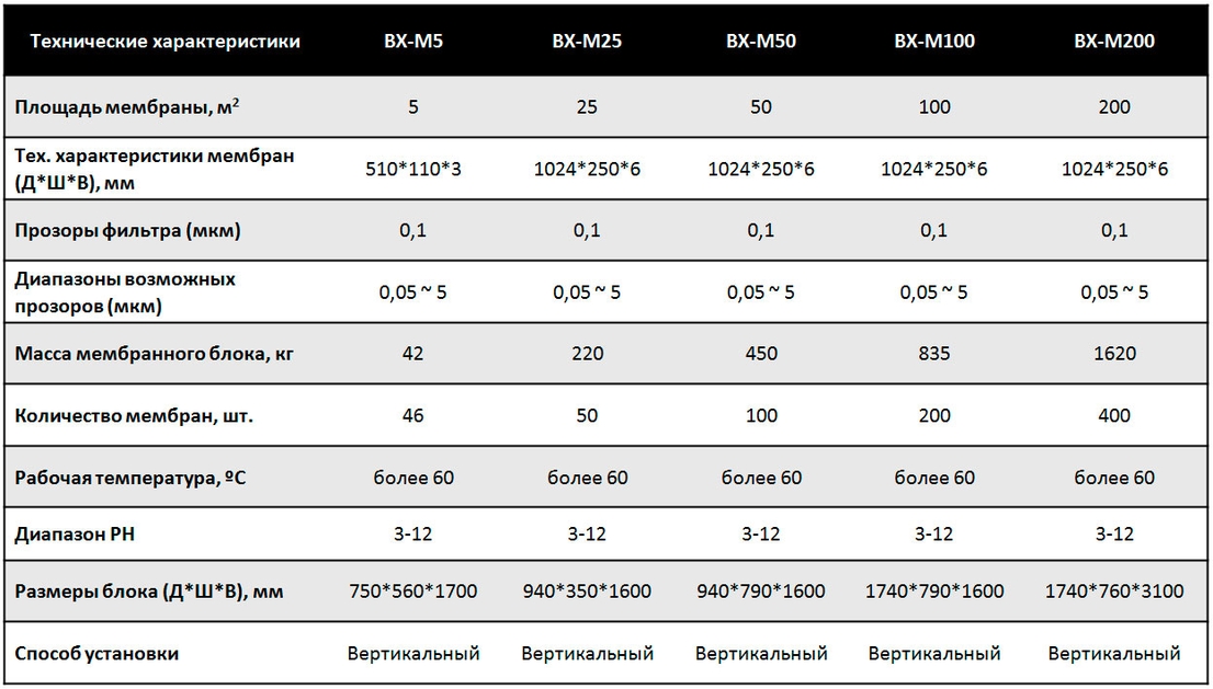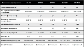 Мембранные блоки на основе плоских цельно керамических мембран представляют собой соединения группы мембран в единую систему, устанавливаемую в корпус из нержавеющей стали, имеет единый трубопровод для сбора пермиата, трубопровод для барботажа и представляет собой технологический модуль, который может быть изготовлен любого размера и характеризующийся общей площадью фильтрующей поверхности в квадратных метрах.